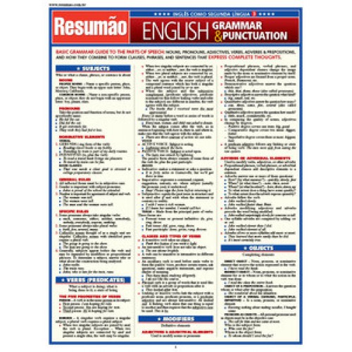 Basic grammar. Nouns. Pronouns. Adjectives. Verbs. Adverbs. Preposition. Subjets: who or what a clause, phrase, or sentence is about. Verbs: properties, classes and types of verbs. Modifiers: adjectives and adverbs. Objects. Words: background, suffix and prefix. Phrases. Clauses. Connectors. Sentences. Punctuation: commas, semicolons, colons, apostrophes, quotation marks, periods & other marks. Basic guide to the function of the elements of punctuation in simple, compound & complex sentences. Commas. Semicolons. Colons. Quotation marks. End punctuation.