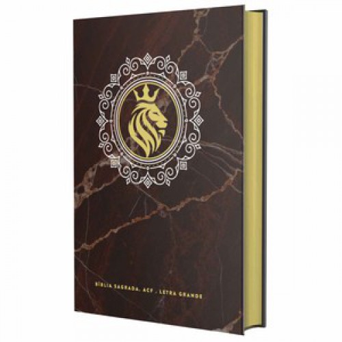 Título: Bíblia Sagrada ACF – Leão Rei | Mármore marrom – Letra Grande