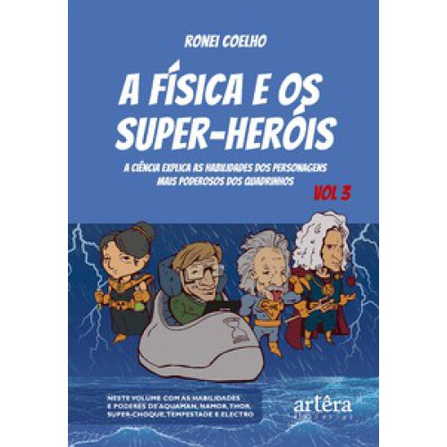 Neste terceiro volume de A física e os super-heróis, Ronei Coelho continua apresentando possíveis explicações científicas para muitas questões que intrigam os fãs de alguns dos personagens mais poderosos da cultura pop. Com uma linguagem que apresenta conceitos científicos de forma simples e concisa, esta obra vem focada nos personagens aquáticos, Aquaman e Namor, e nos personagens com poderes elétricos, como Thor, Super Choque, Tempestade e o vilão Electro. Amplamente ilustrado e com uma linguagem descontraída e acessível, o livro de Ronei Coelho elucida algumas questões que intrigam os fãs desses personagens, por exemplo: