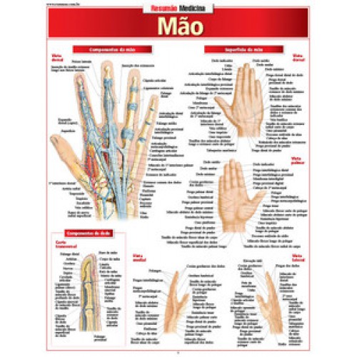 Mais de 25 ilustrações detalhadas mostram a mão sob diferentes ângulos e cortes. Os componentes da mão e do dedo, os músculos (em várias camadas), os ossos, as articulações, os ligamentos, as artérias, os nervos e as veias em imagens bastante detalhadas. Dezenas de indicações anatômicas para cada ilustração.