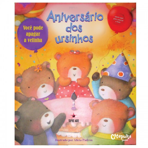 Ajude os ursinhos a comemorar o aniversário. Pressione o botão para ouvir a música de aniversário e ver como as velas se acendem . Você mesmo pode apagá-las!